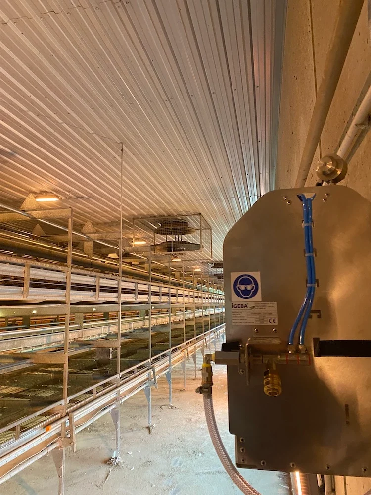Die Vernebelung erfolgt über wartungsarme, energiesparende Geräte, die schnell und effizient zu reinigen sind. Damit wird der gesamte Stallbereich aktiv regenerativ behandelt – für gesunde Tiere, saubere Luft und ein angenehmes Arbeitsumfeld.